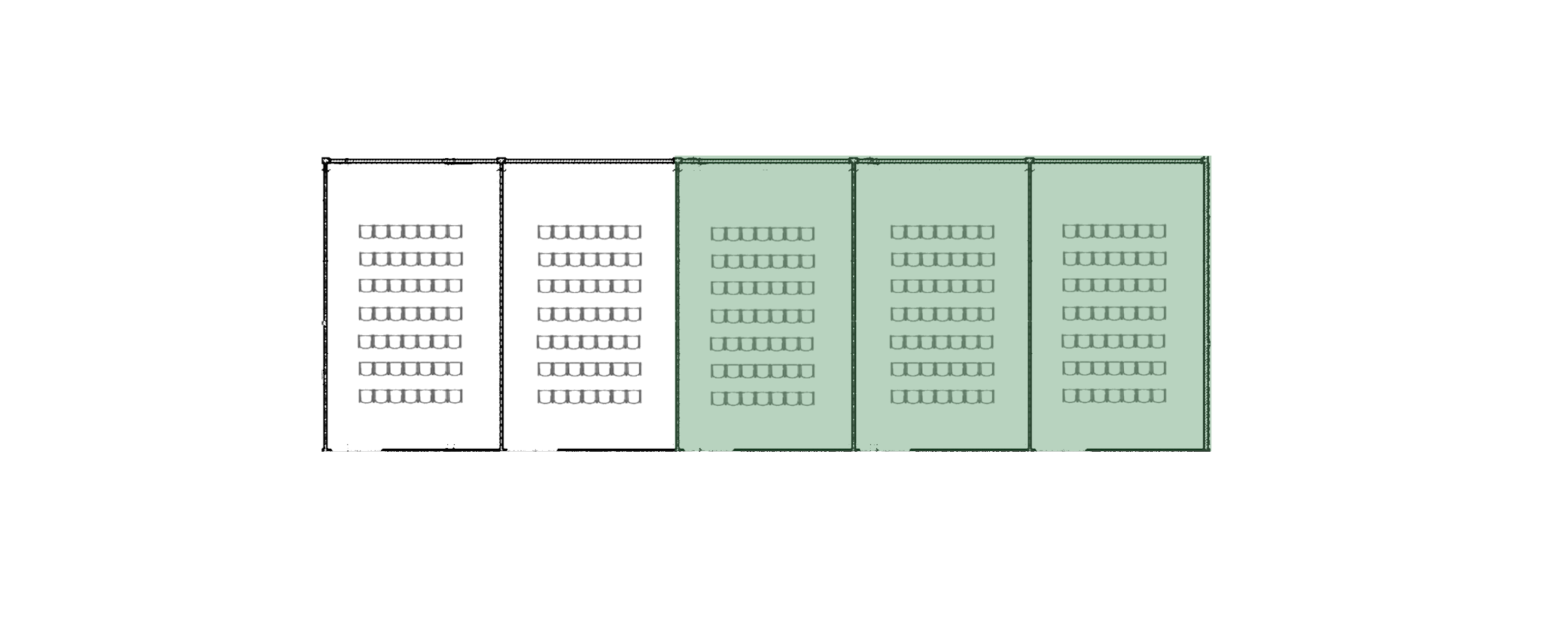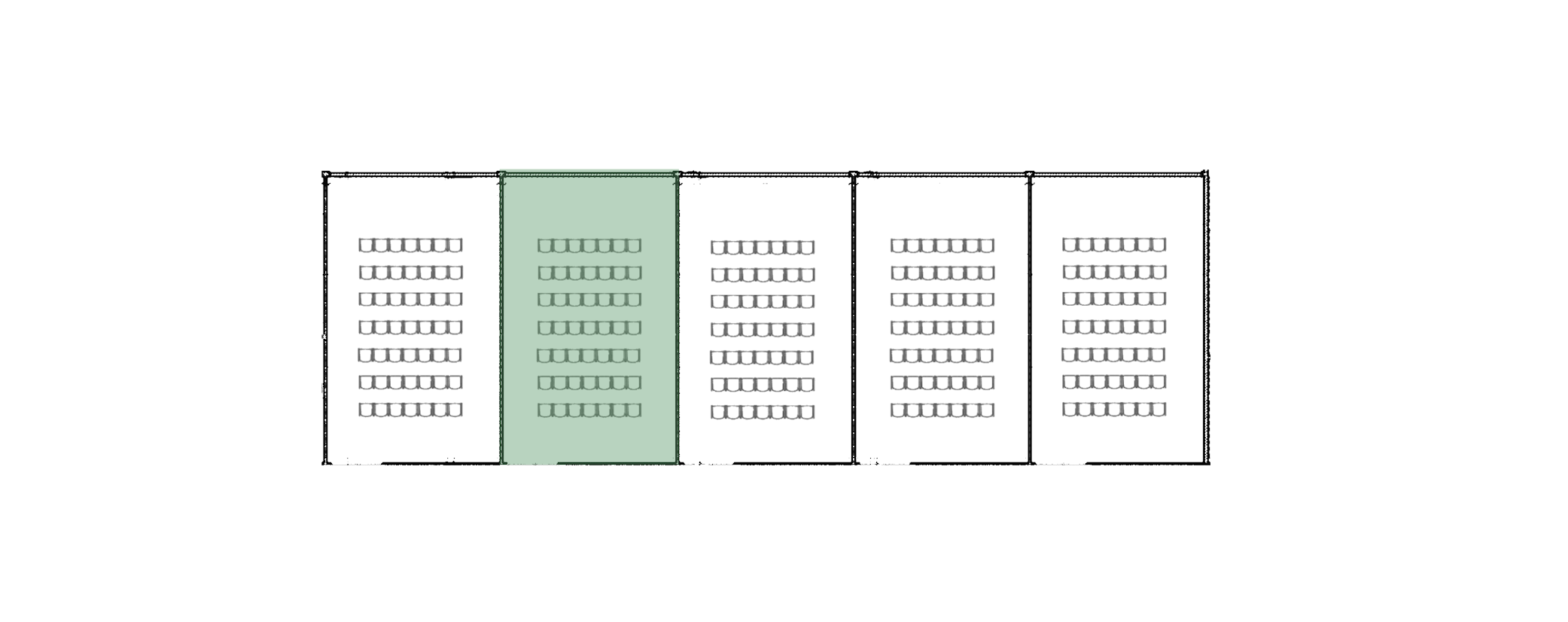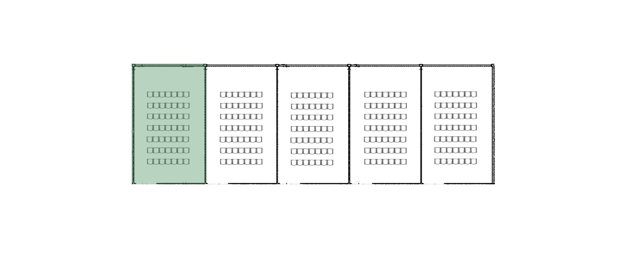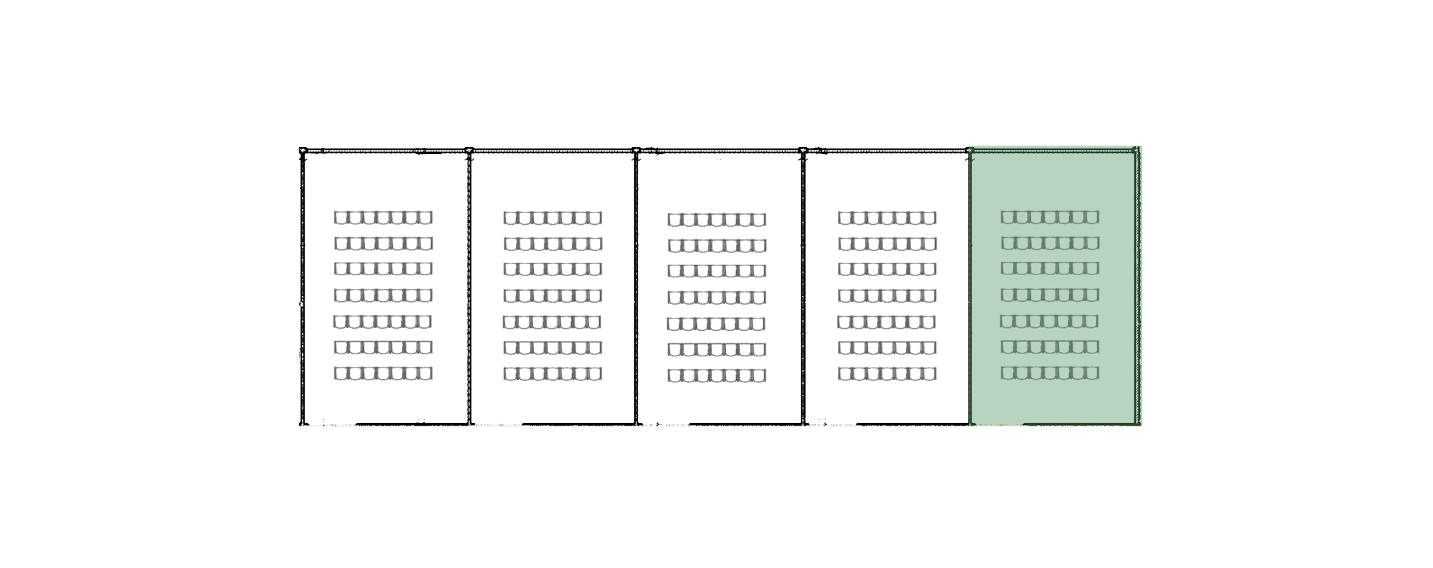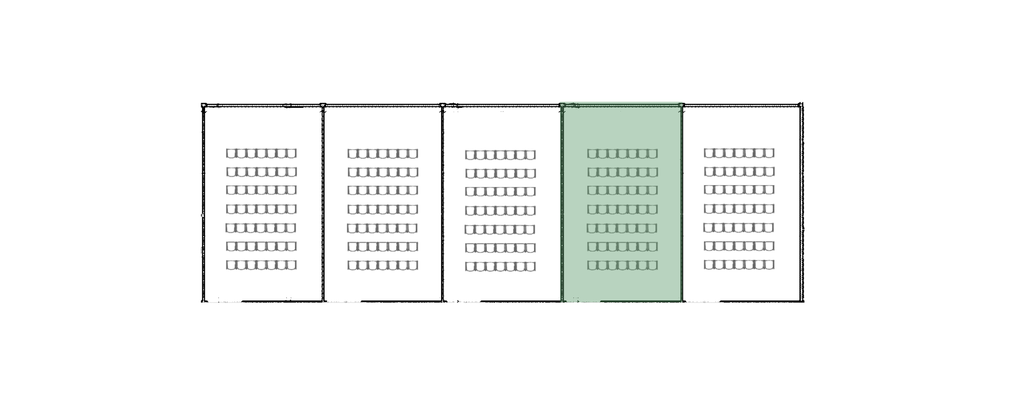 The largest conference room at KONNEX. By opening all partition walls, the space becomes a large auditorium suitable for conferences, presentations and events. Equipped with professional audio and video technology, projector, screen, microphones and a presentation system.